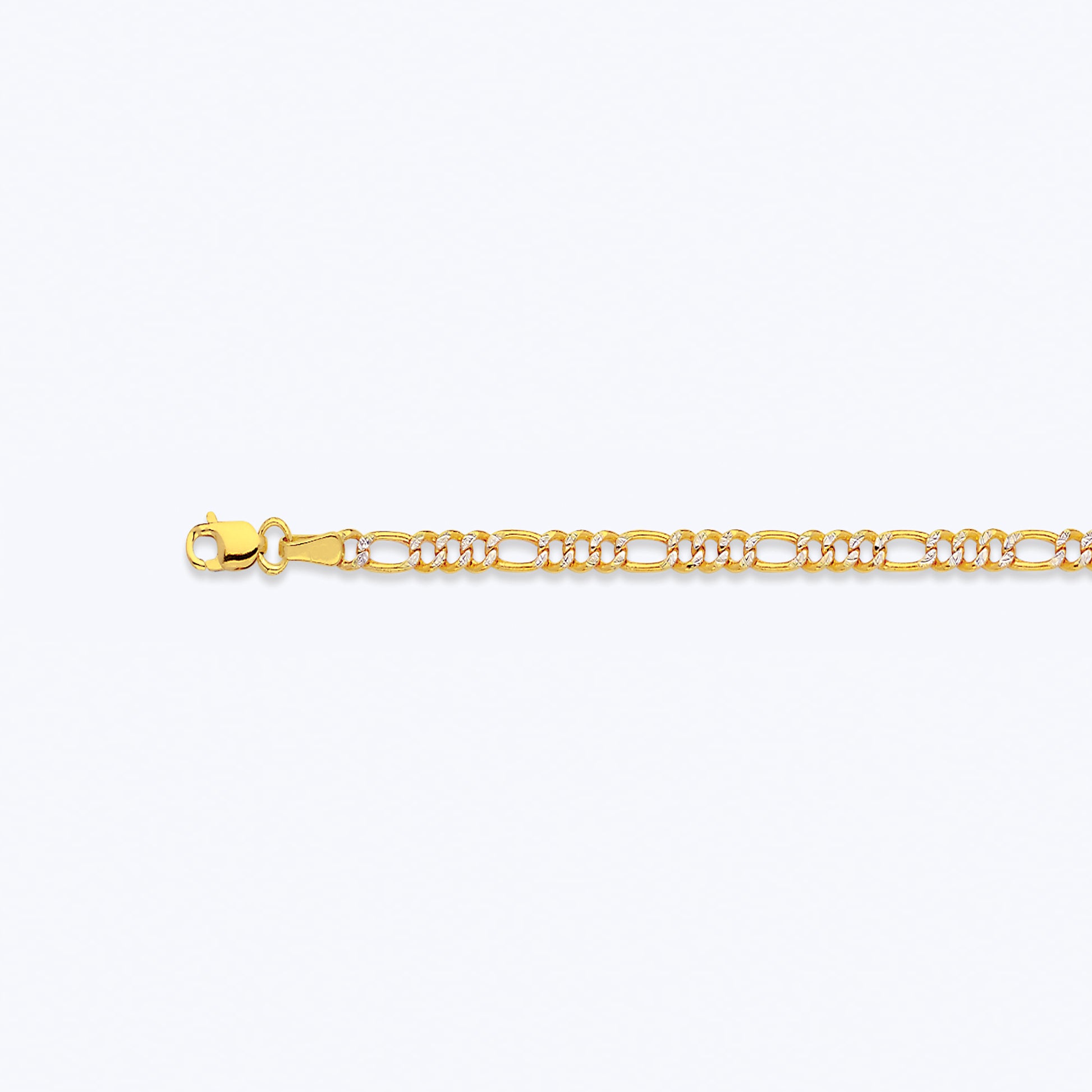 10K 2.5MM YELLOW GOLD HOLLOW PAVE FIGARO 8" CHAIN BRACELET (AVAILABLE IN LENGTHS 7" - 30")