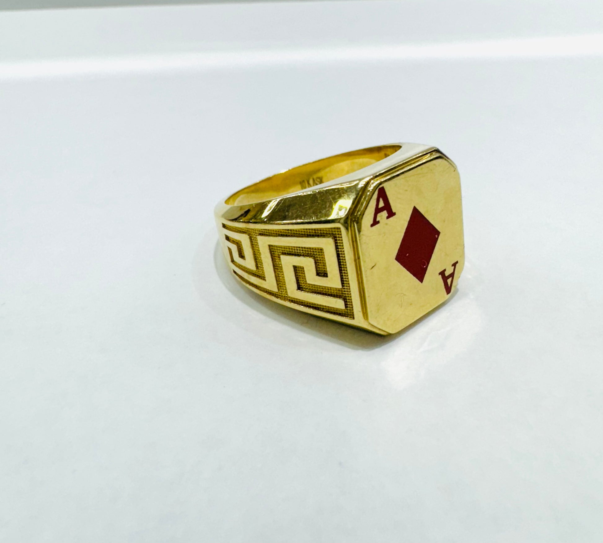 10K GOLD ACE CARD RING WITH VERSACE BORDER, WEIGHT: 9gm, SIZE: 10