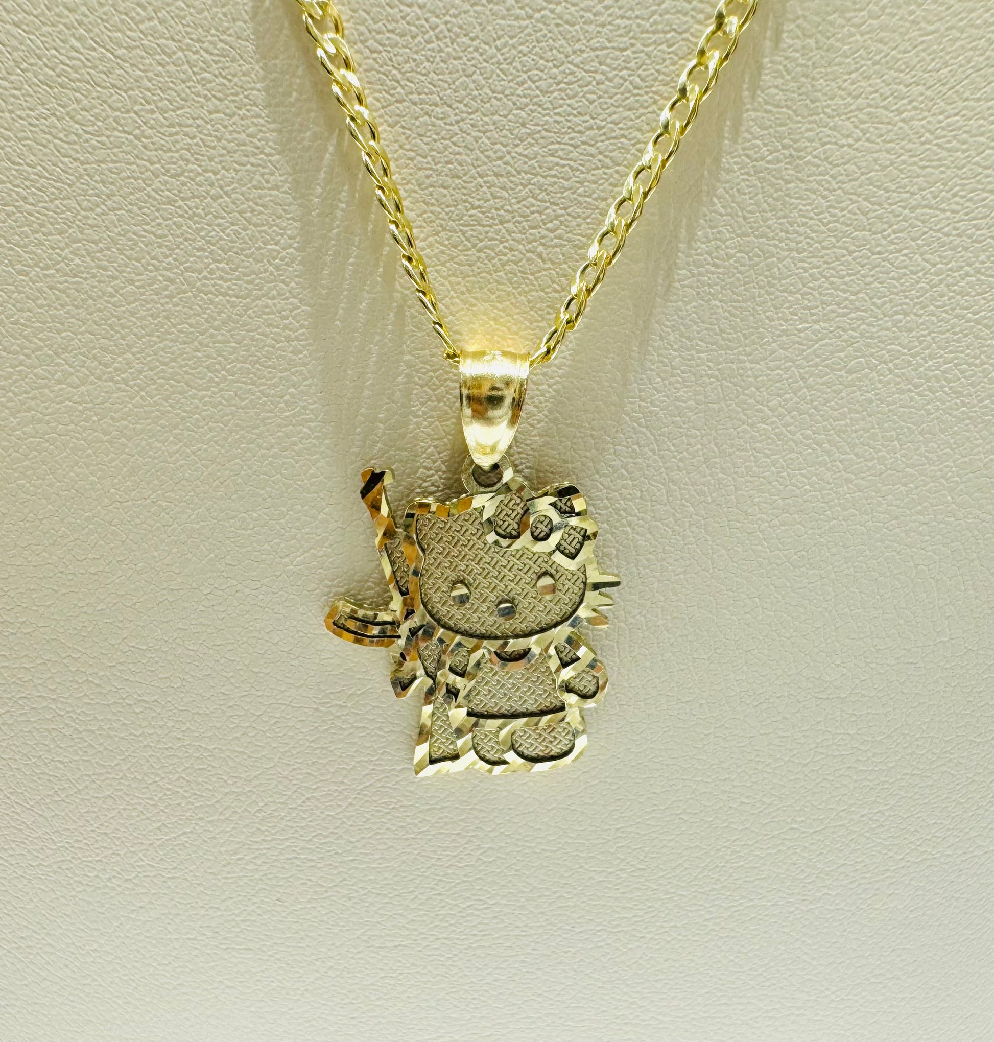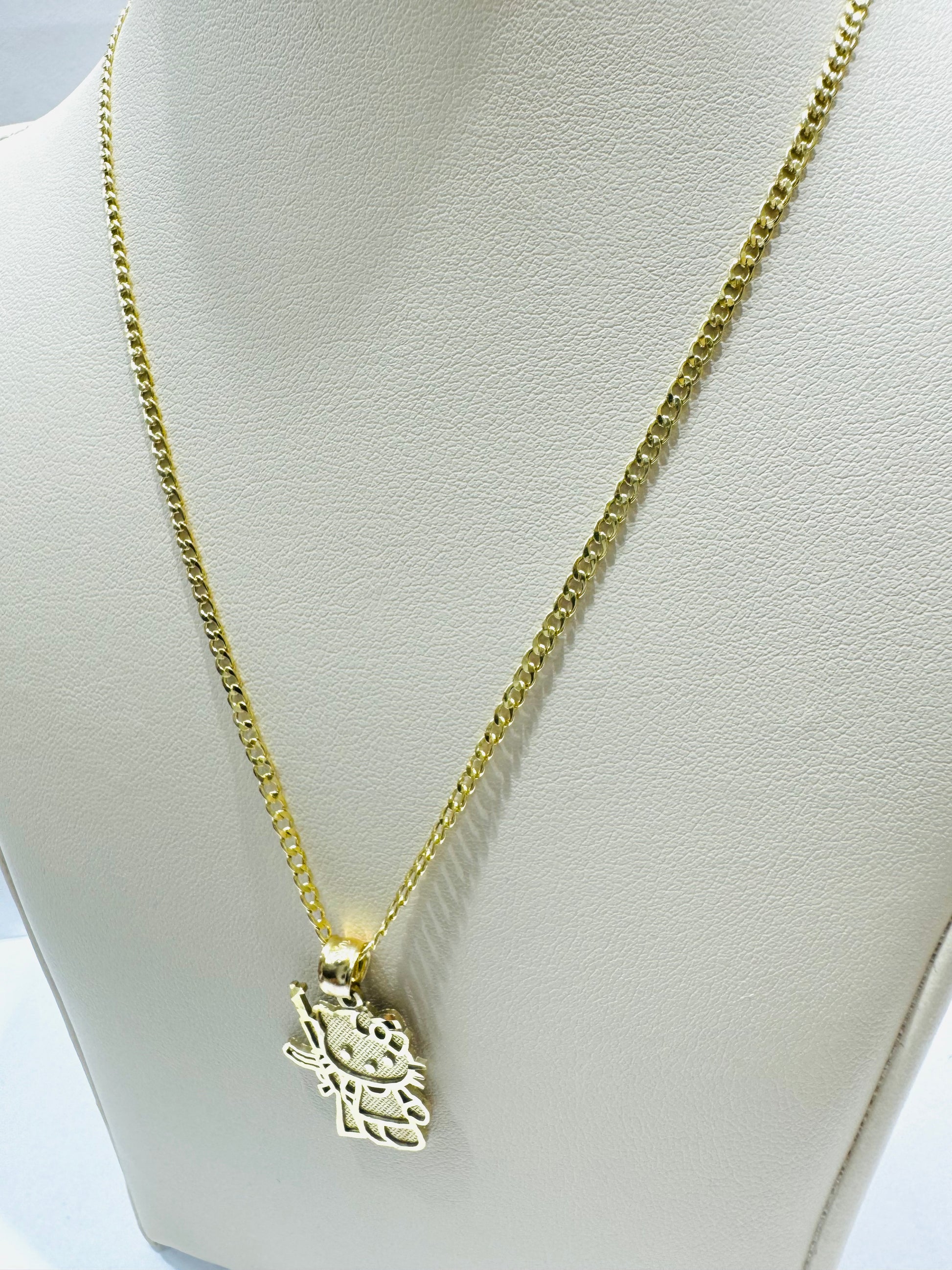 10K GOLD CUBAN LINK NECKLACE 18”, WEIGHT: 1.3gm, WIDTH: 1.99mm WITH SMALL HELLO KITTY GUN PENDANT, WEIGHT: 1.8gm