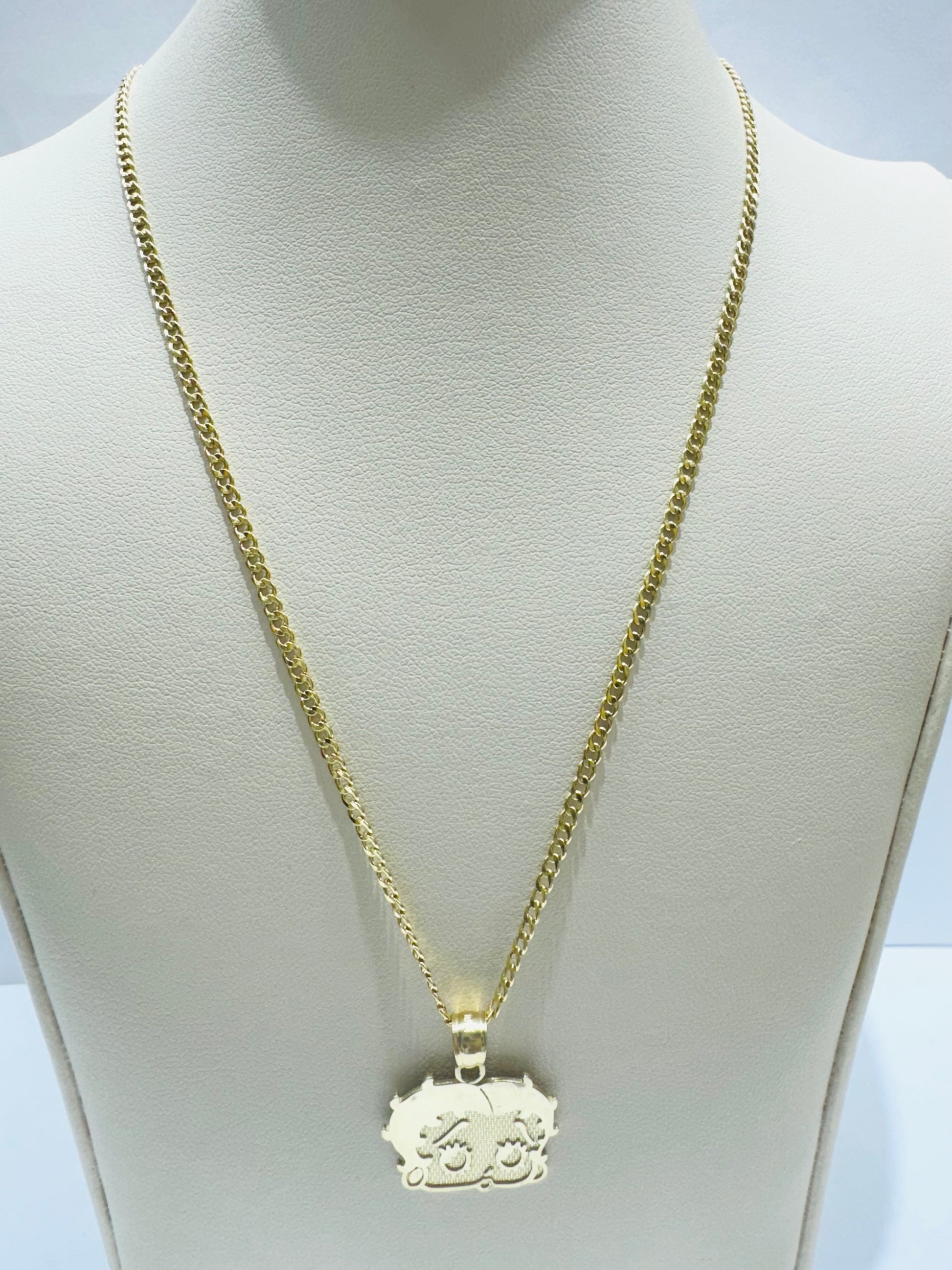10K GOLD CUBAN LINK NECKLACE 24”, WEIGHT: 1.8gm, WIDTH: 1.89mm AND BETTY BOOP PENDANT, WEIGHT: 1.9gm