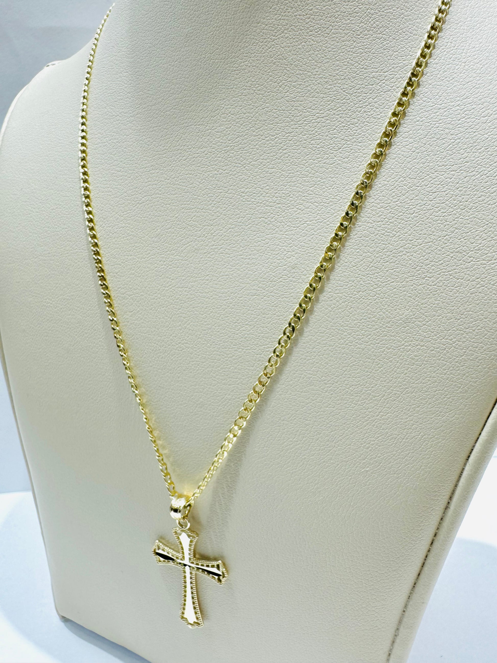 10K GOLD CUBAN LINK NECKLACE 26”, WEIGHT: 1.8gm, WIDTH: 2mm WITH CROSS PENDANT, WEIGHT: 0.8gm