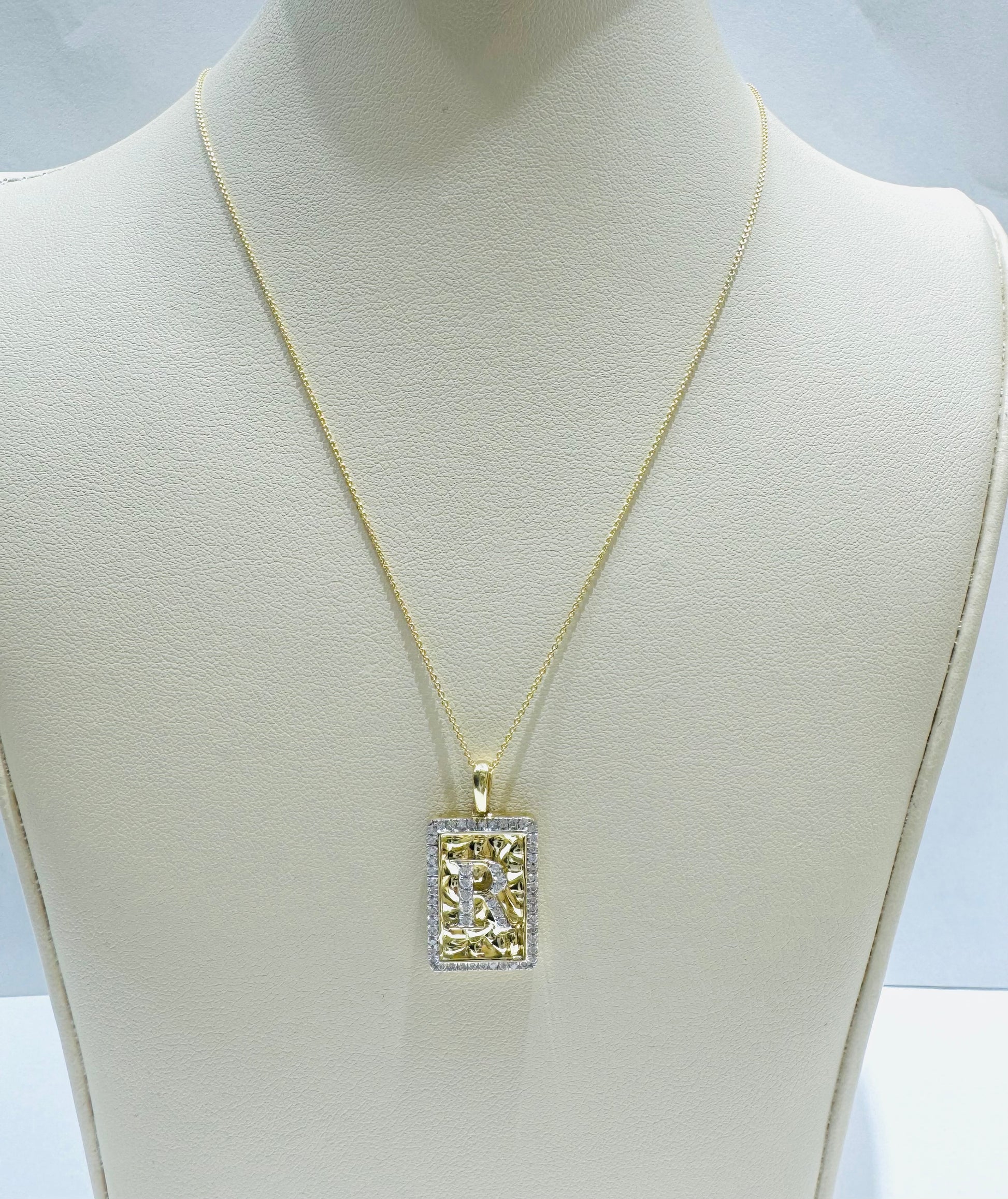 10K GOLD INITIAL “R” LETTER NATURAL DIAMOND PENDANT WITH NECKLACE, 0.25CT