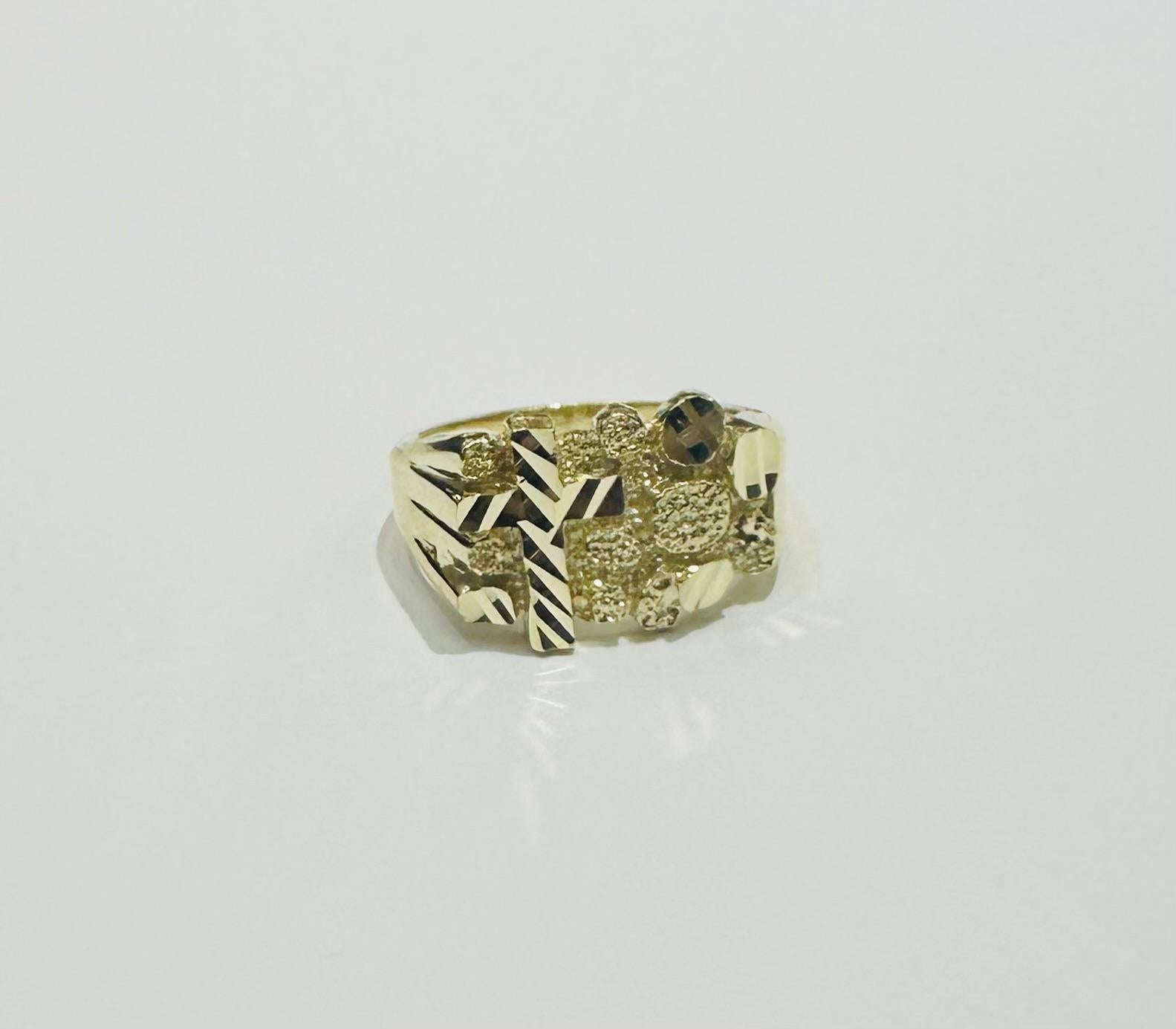 10K GOLD NUGGET CROSS RING, WEIGHT: 6.0gm