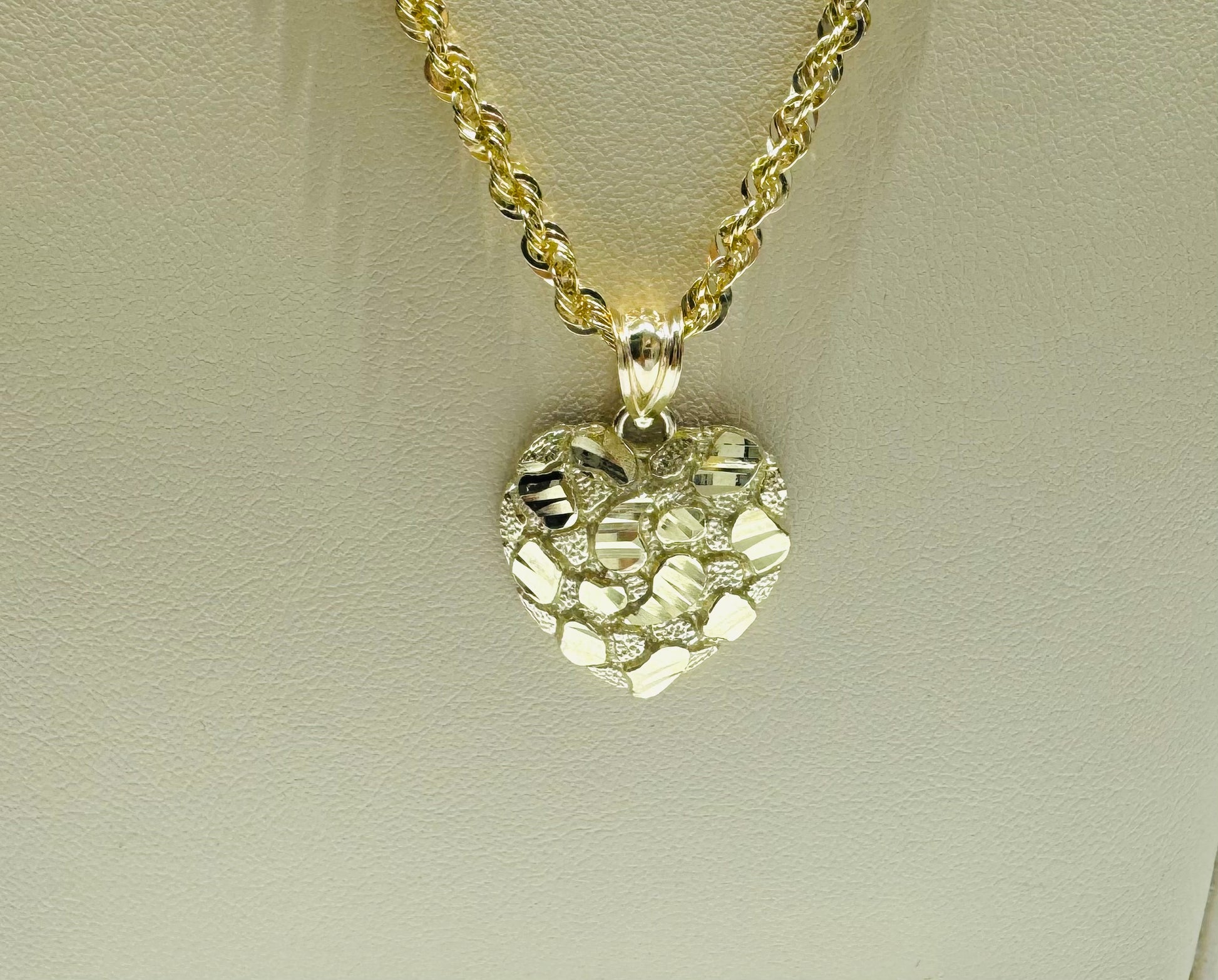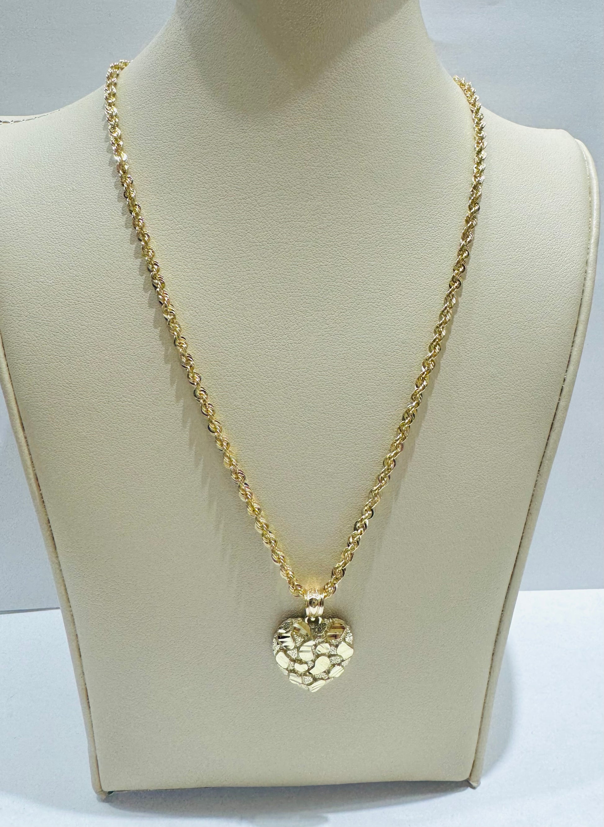 10K GOLD ROPE NECKLACE 18”, WEIGHT: 3.2gm, WIDTH: 2.52mm AND HEART PENDANT, WEIGHT: 1.6gm