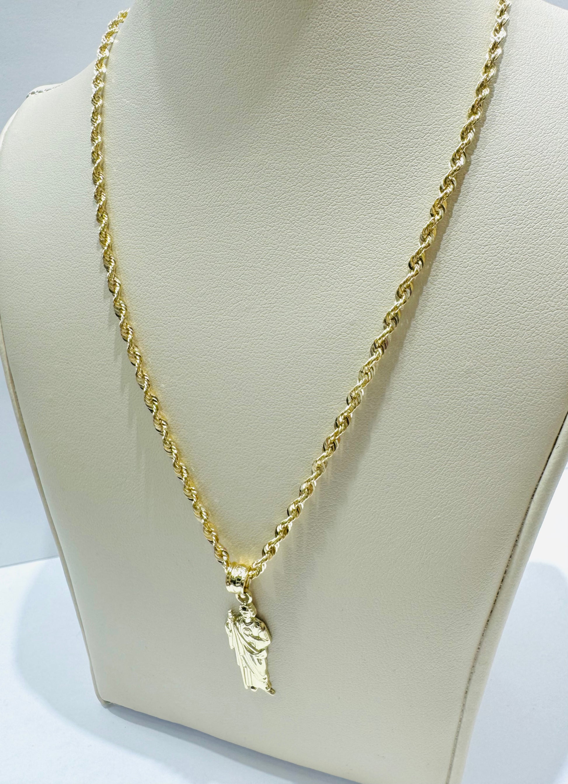10K GOLD ROPE NECKLACE 20”, WEIGHT: 3.4gm, WIDTH: 2.39mm AND JESUS PENDANT, WEIGHT: 1.1gm