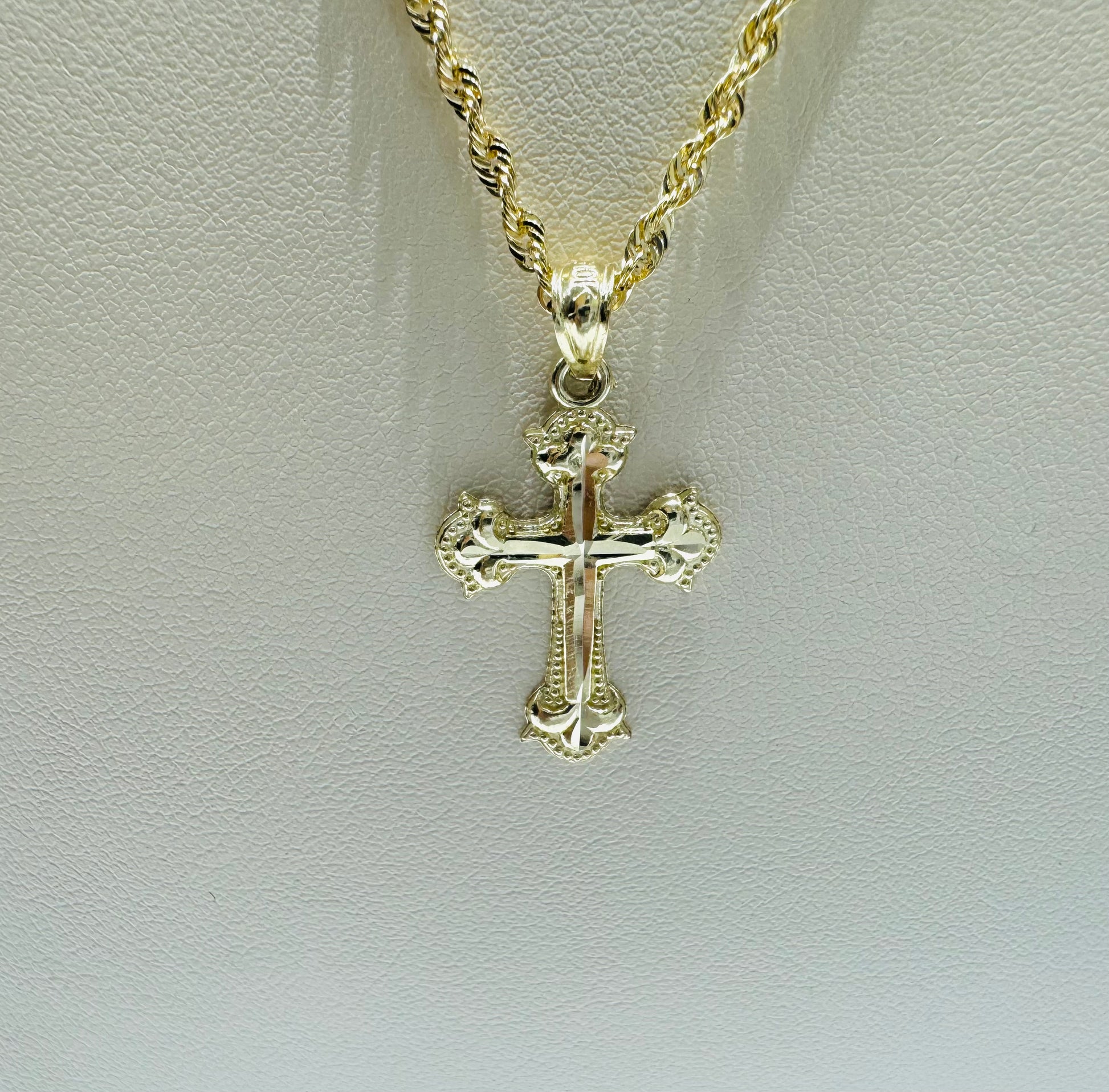 10K GOLD ROPE NECKLACE 22”, WEIGHT: 1.8gm, WIDTH: 1.7mm WITH SMALL CROSS PENDANT, WEIGHT: 0.8gm