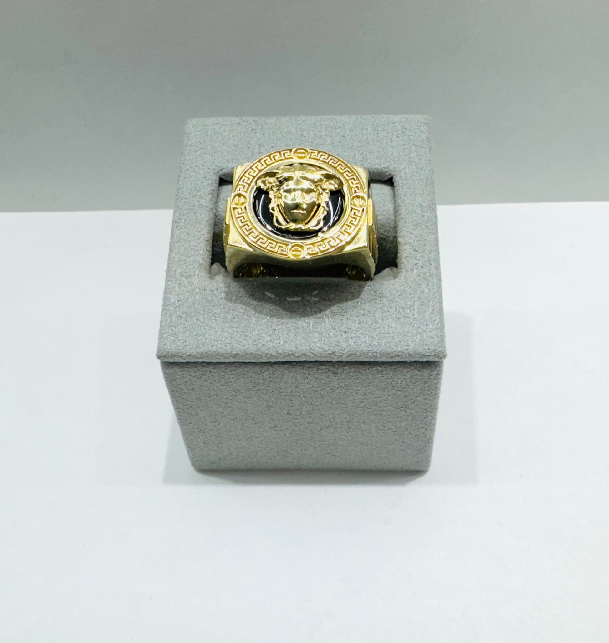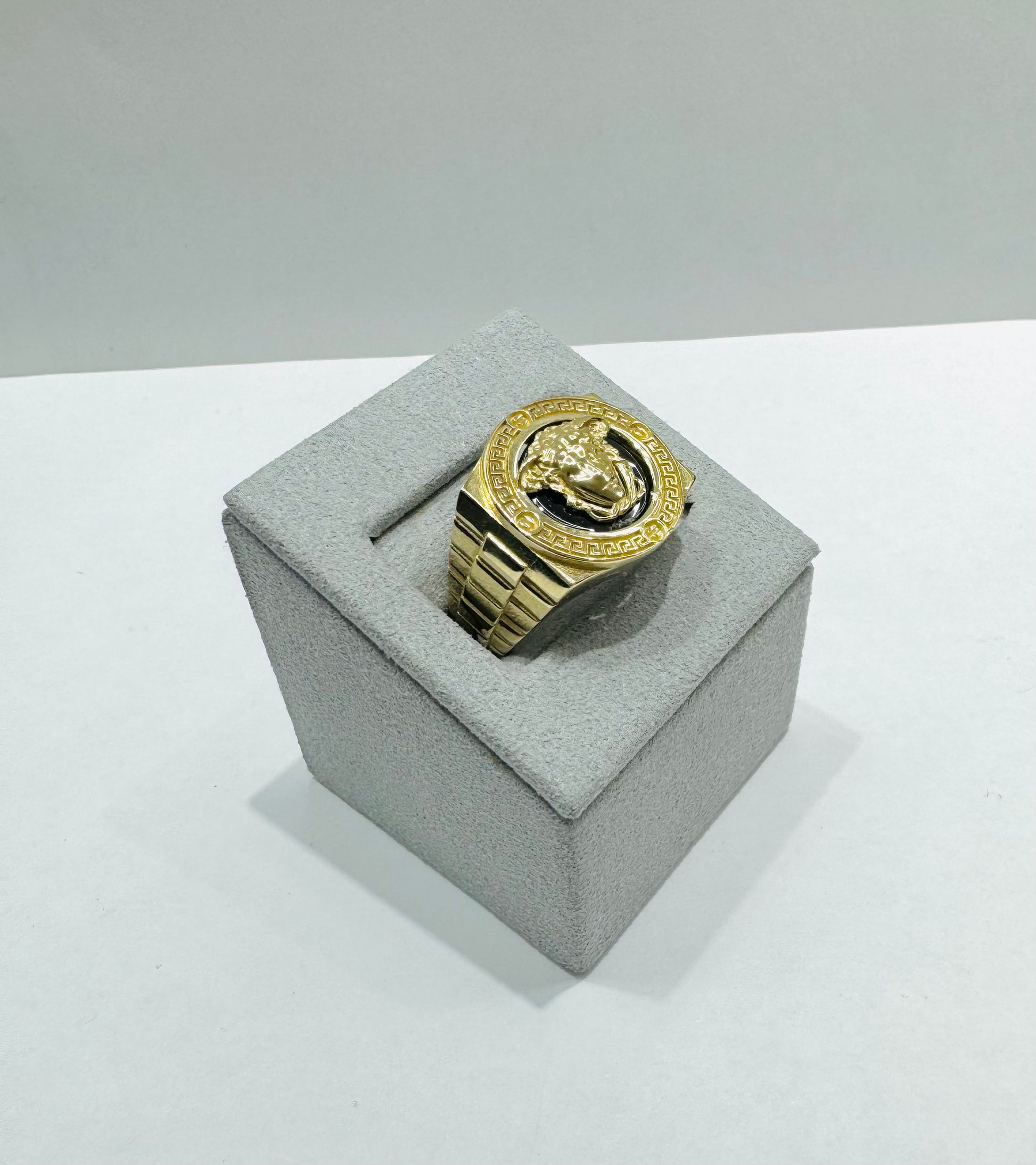 10K GOLD MEDUSA HEAD RING, SIZE: 9, WEIGHT: 7.8gm