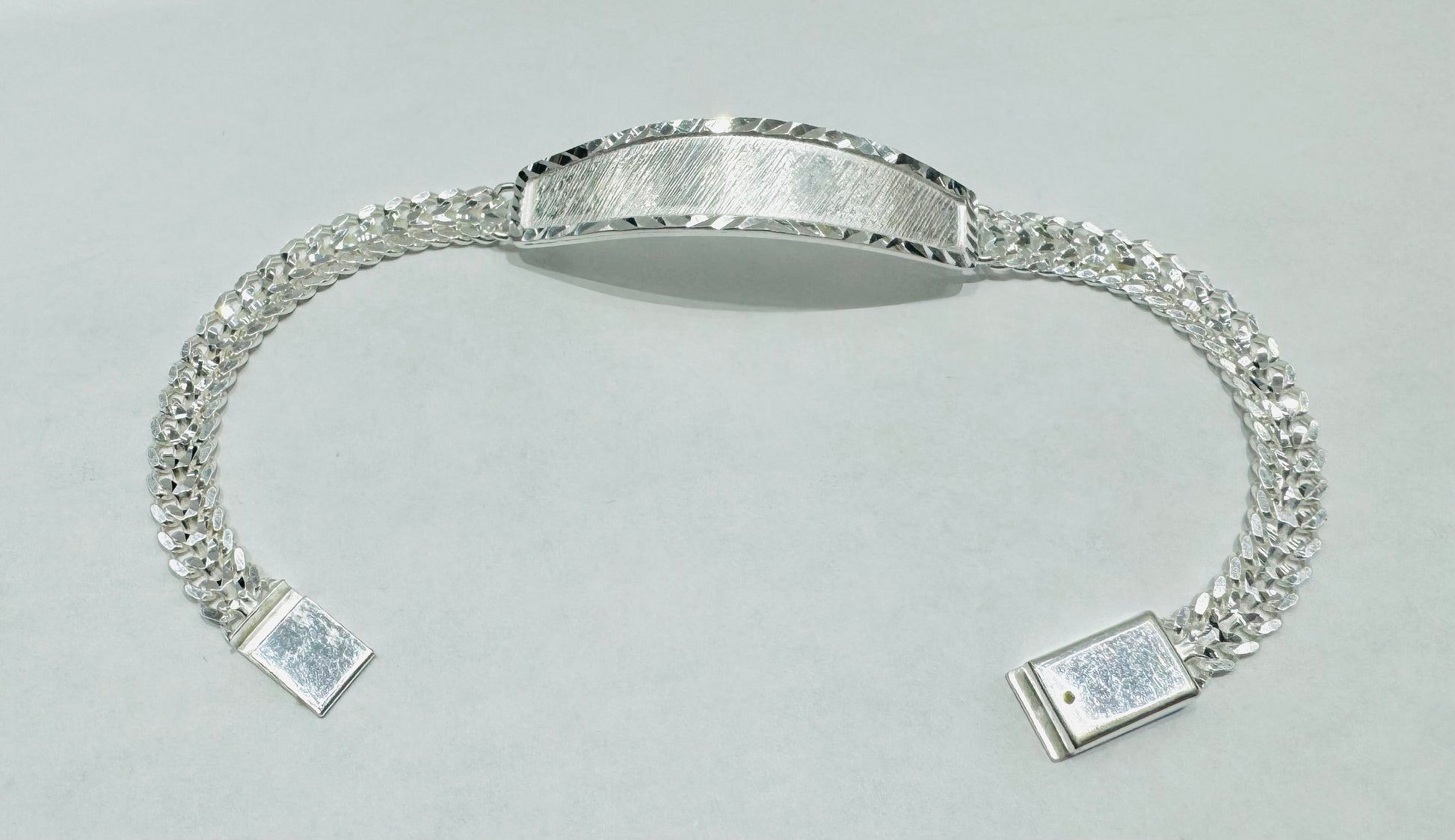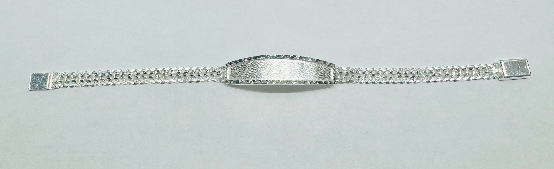 SILVER ITALIAN DOUBLE CUBAN LINK BRACELET WITH ID 7”, WIDTH: 8.8mm, WEIGHT: 14.5gm