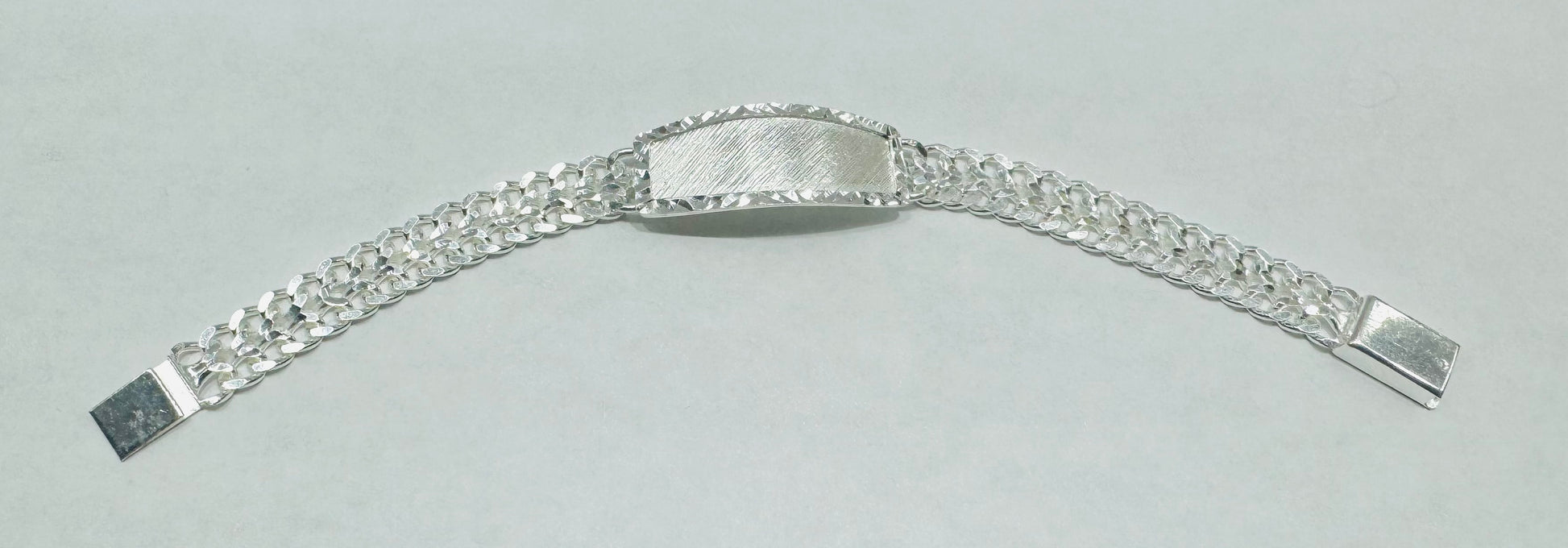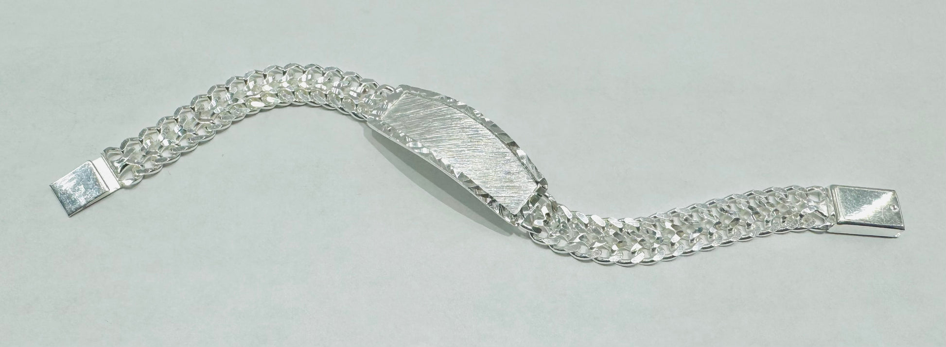 SILVER ITALIAN DOUBLE CUBAN LINK BRACELET WITH ID 9”, WEIGHT: 13.4gm, WIDTH: 6.3mm