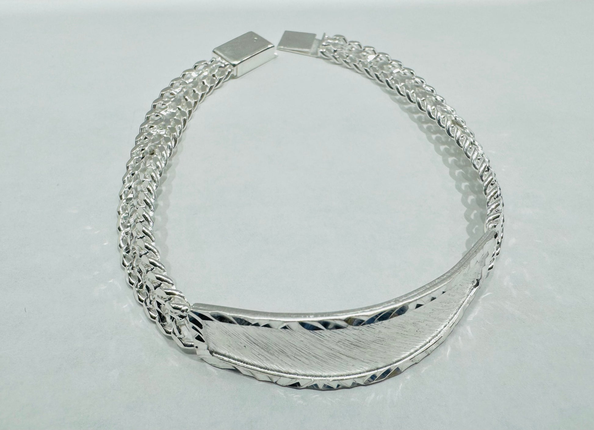 SILVER ITALIAN DOUBLE CUBAN LINK BRACELET WITH ID 9”, WEIGHT: 20.2gm, WIDTH: 8.9mm