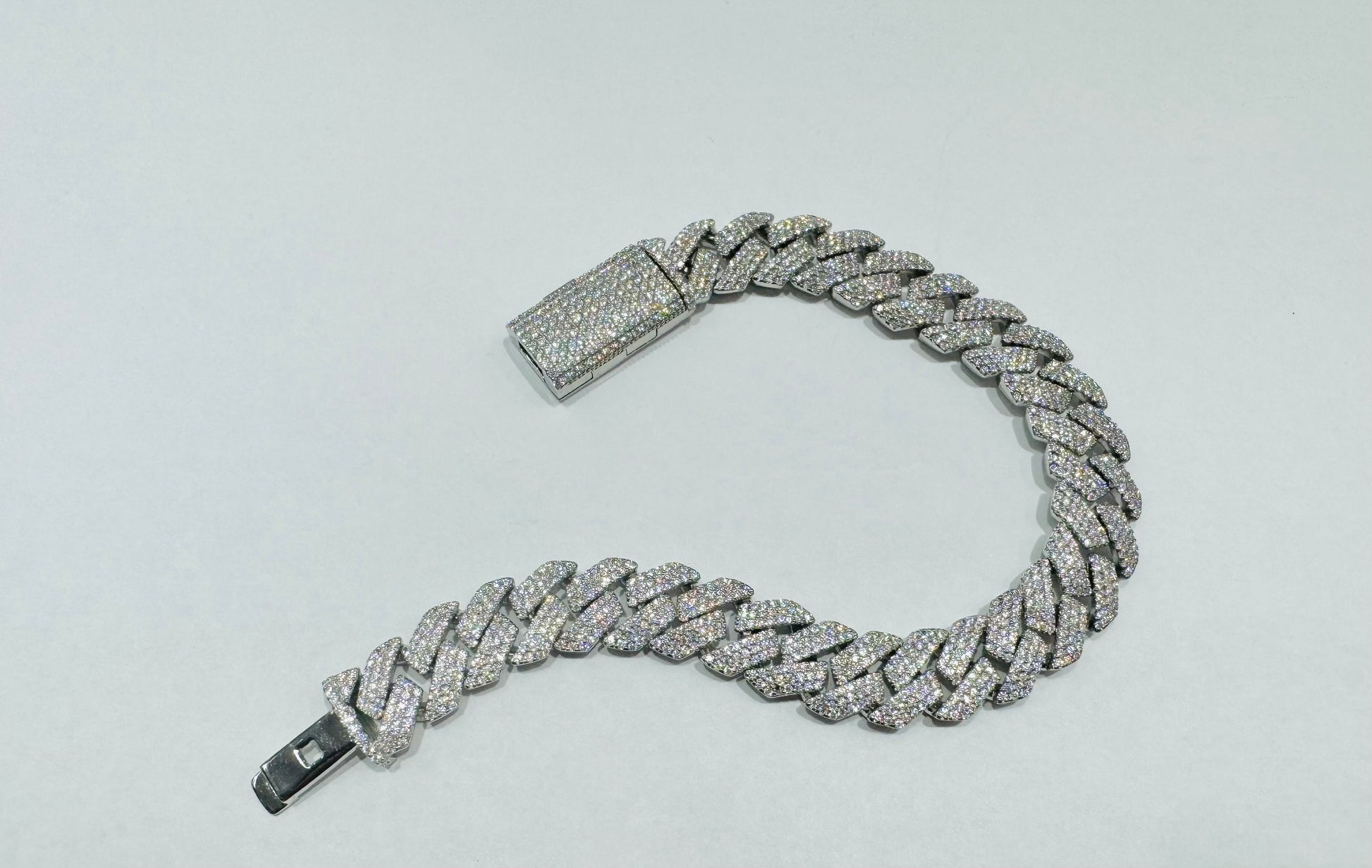 SILVER MOISSANITE CUBAN LINK BRACELET 8”, WIDTH: 12mm