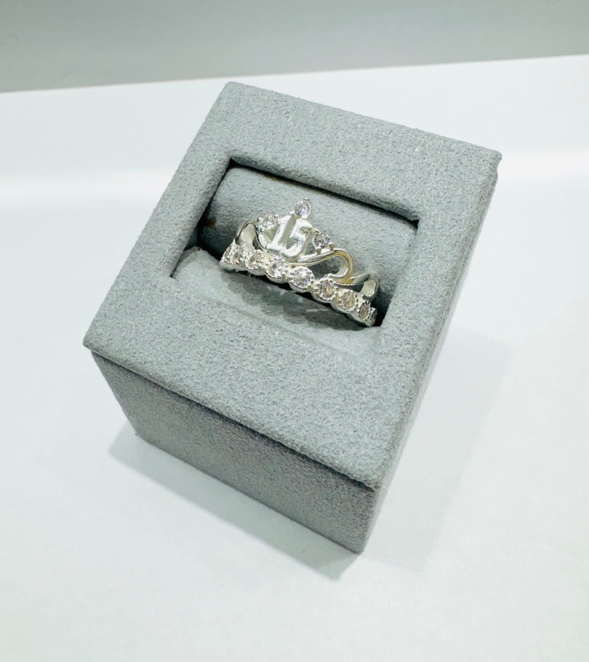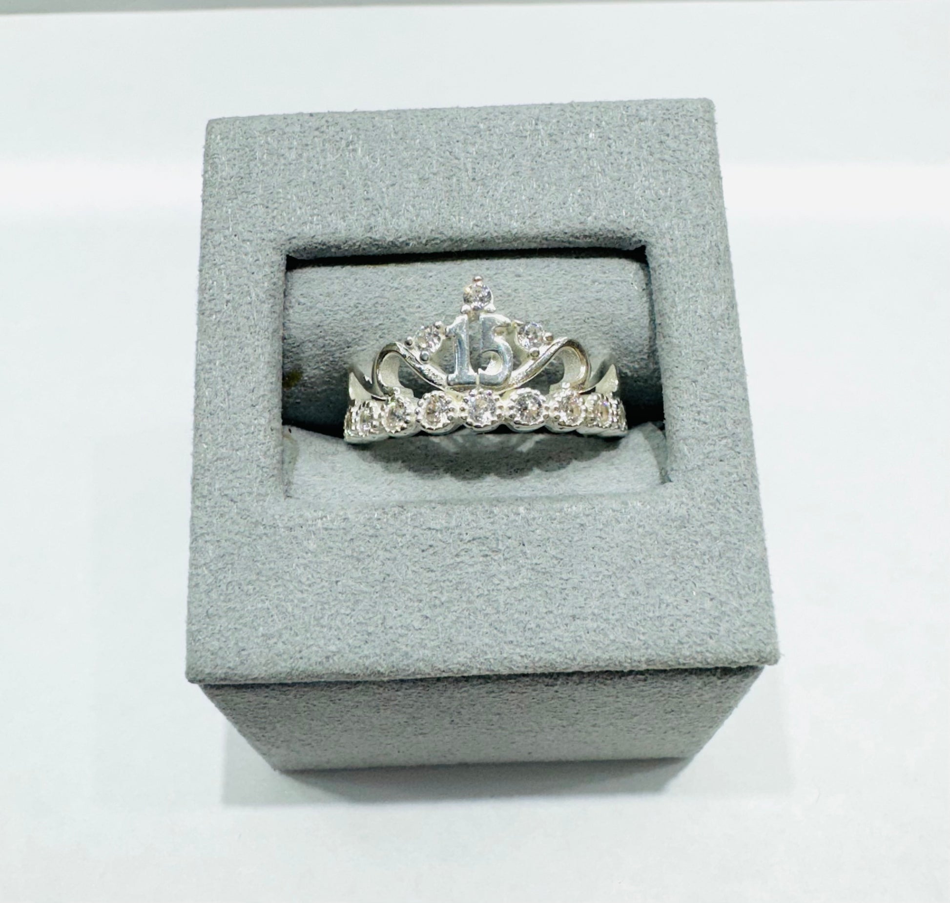 SILVER QUINCEANERA CROWN 15 RING, SIZE: 8, WEIGHT: 3.3gm