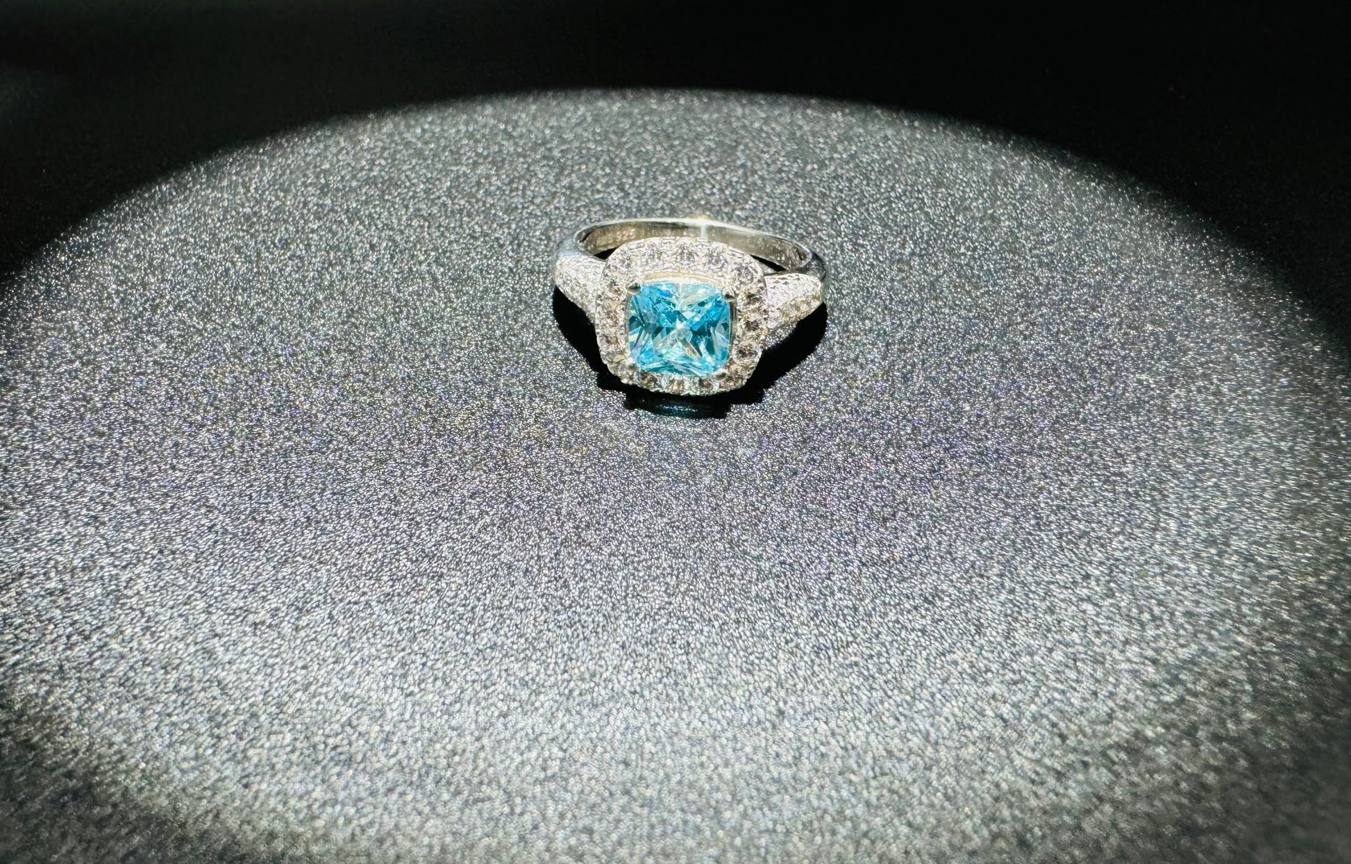 SILVER RING WITH BLUE AND WHITE SWAROVSKI STONES, SIZE: 8, WEIGHT: 4.7gm