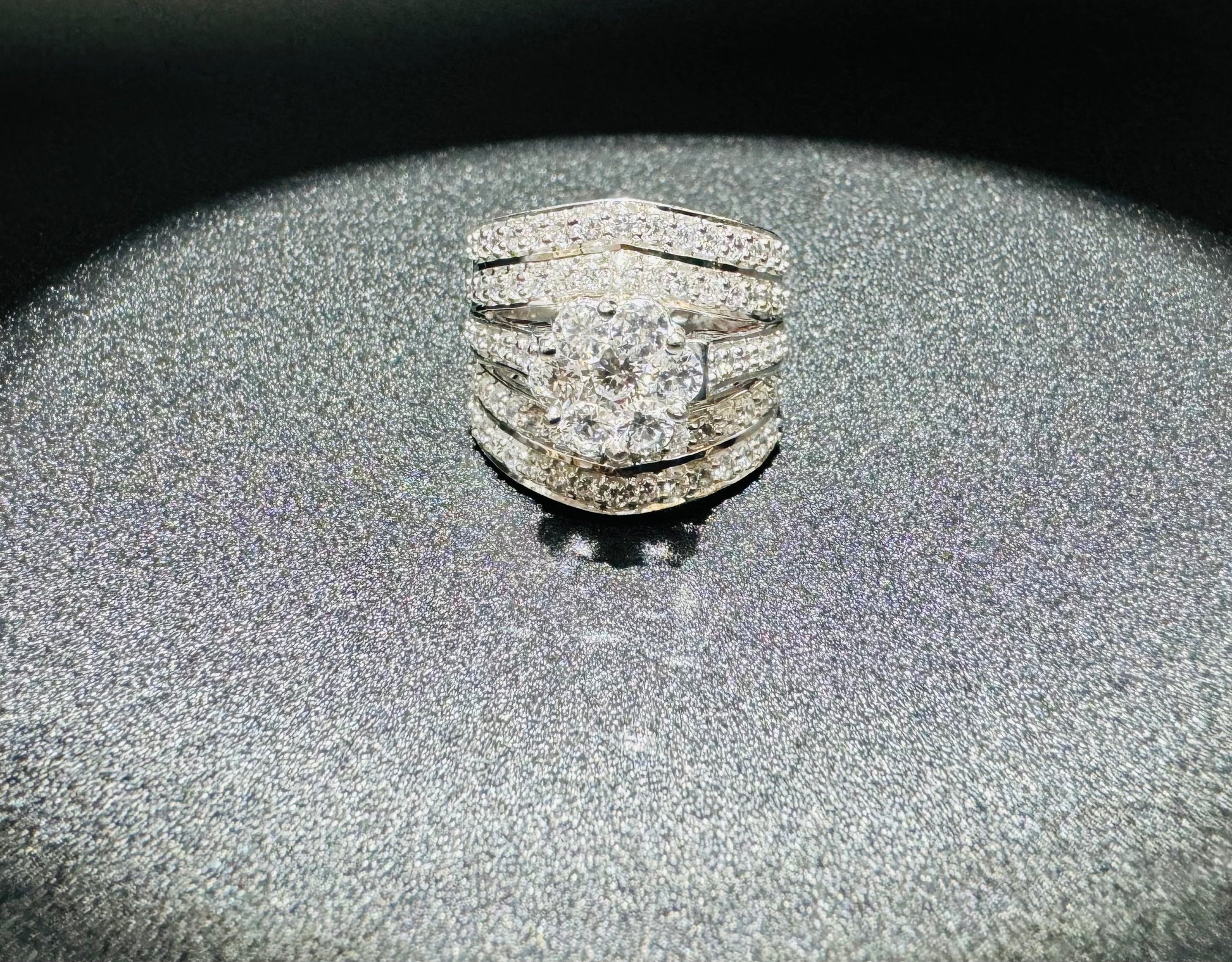 SILVER RING WITH CZ STONES 5CT, SIZE: 7, WEIGHT: 10.8gm