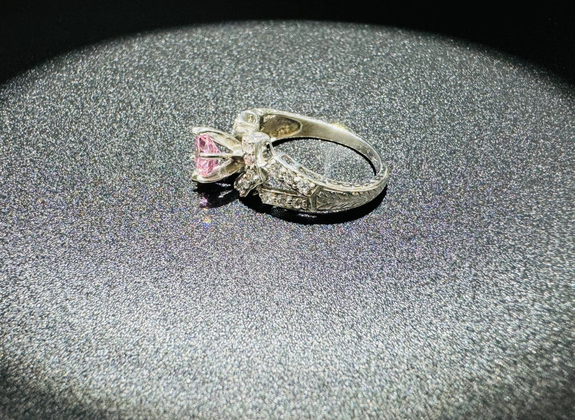 SILVER RING WITH PINK AND WHITE CZ STONES, SIZE: 7, WEIGHT: 4.1gm