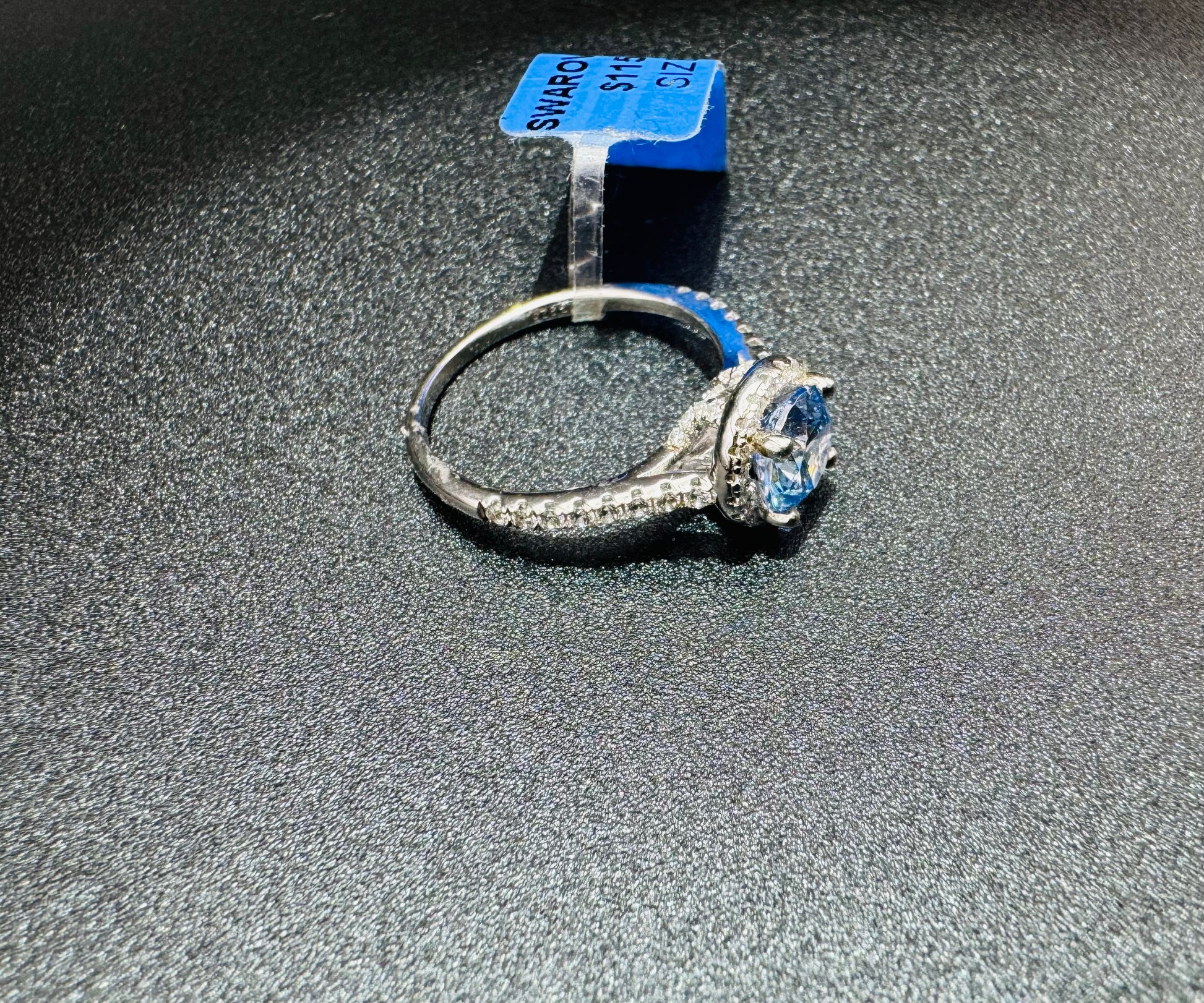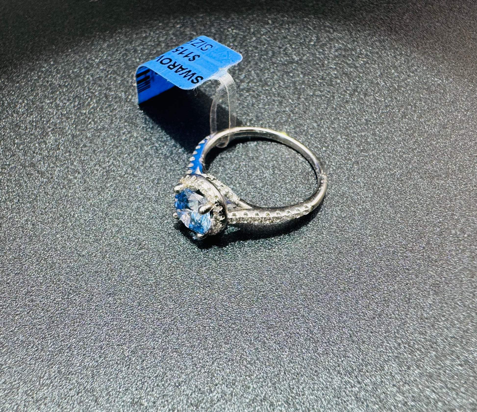 SILVER RING WITH SKY BLUE TOPAZ SWAROVSKI STONES, SIZE: 6, WEIGHT: 2.4gm