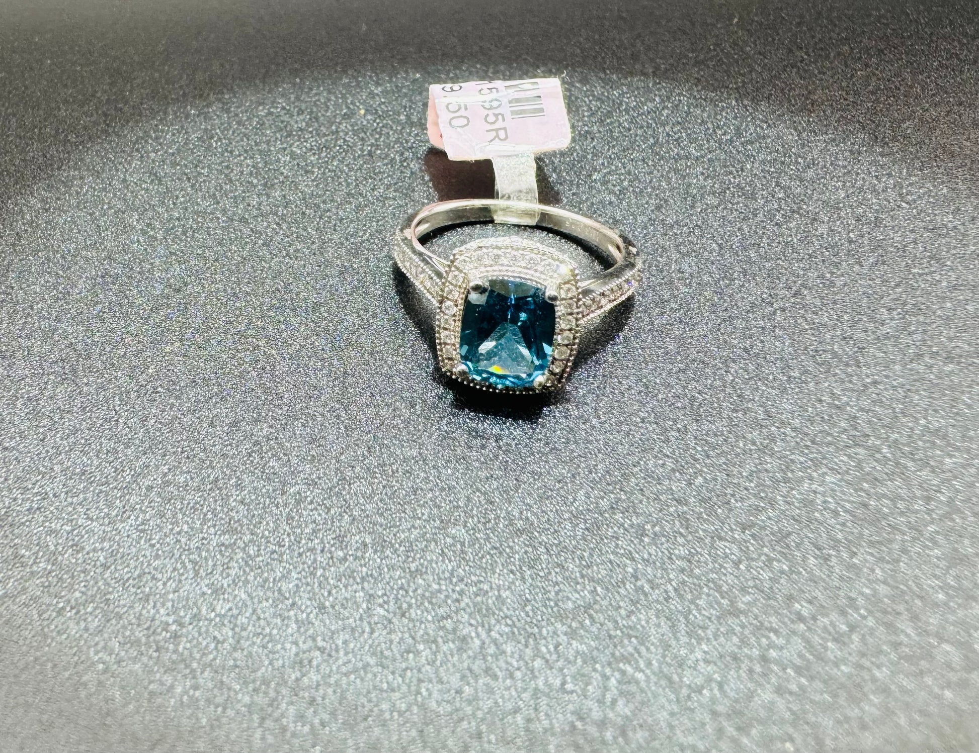 SILVER RING WITH SKY BLUE TOPAZ SWAROVSKI STONES, SIZE: 8, WEIGHT: 4.5gm