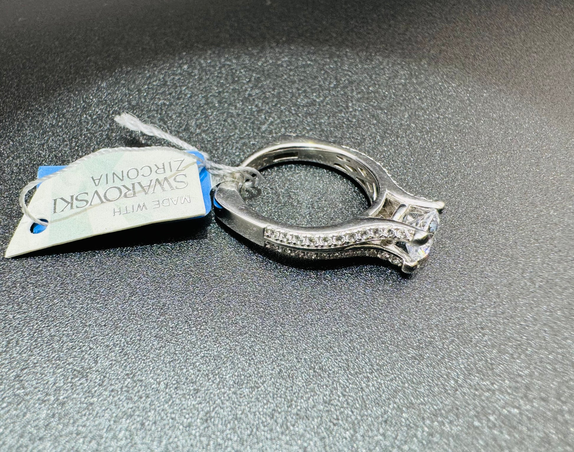 SILVER RING WITH SWAROVSKI STONES, SIZE: 7, WEIGHT: 5.2gm