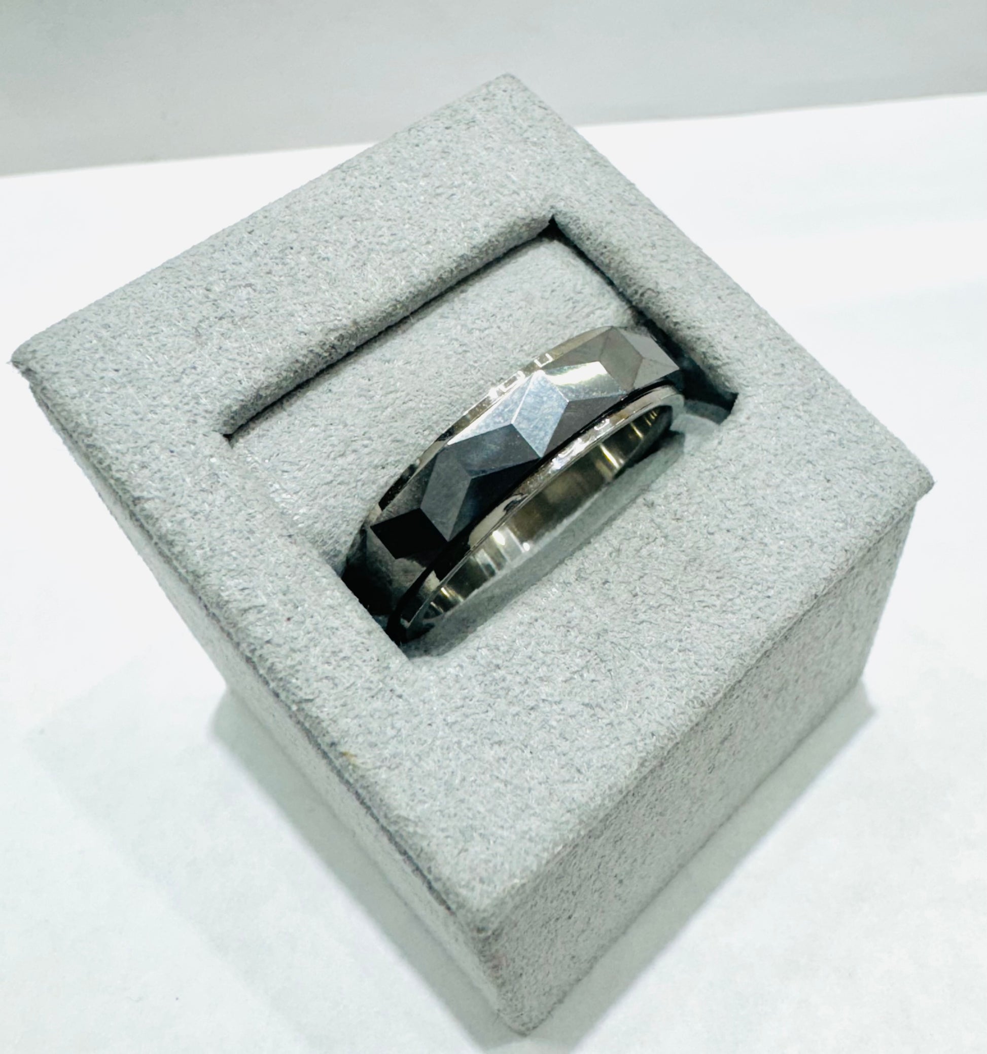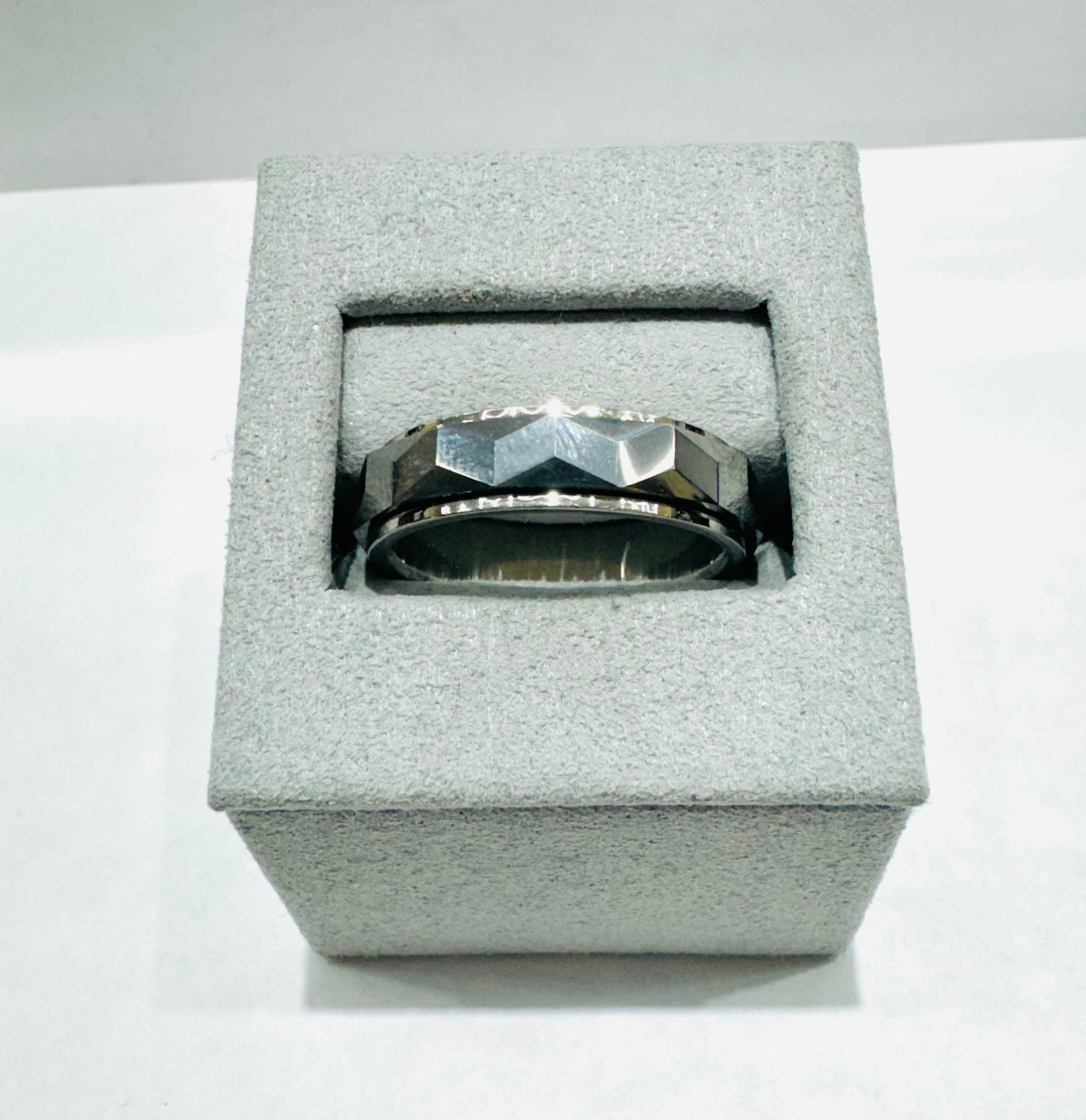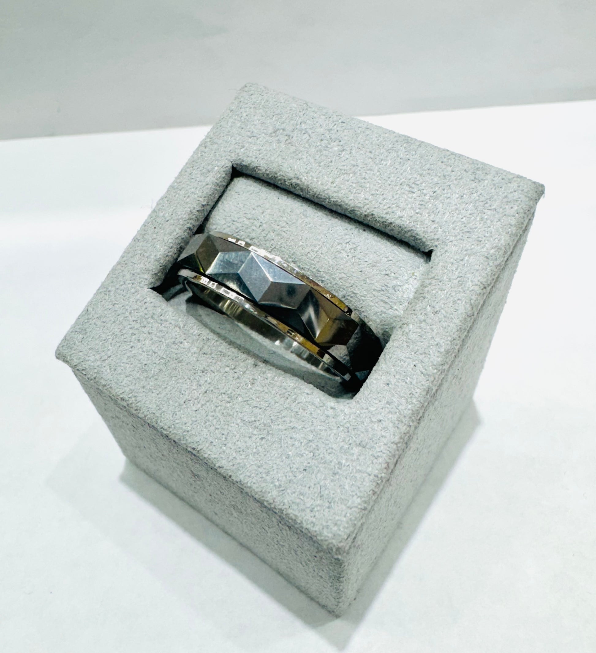 TUNGSTEN CARBIDE MENS WEDDING BAND WITH FACETED HAMMERED DESIGN 6mm, SIZE: 10.5