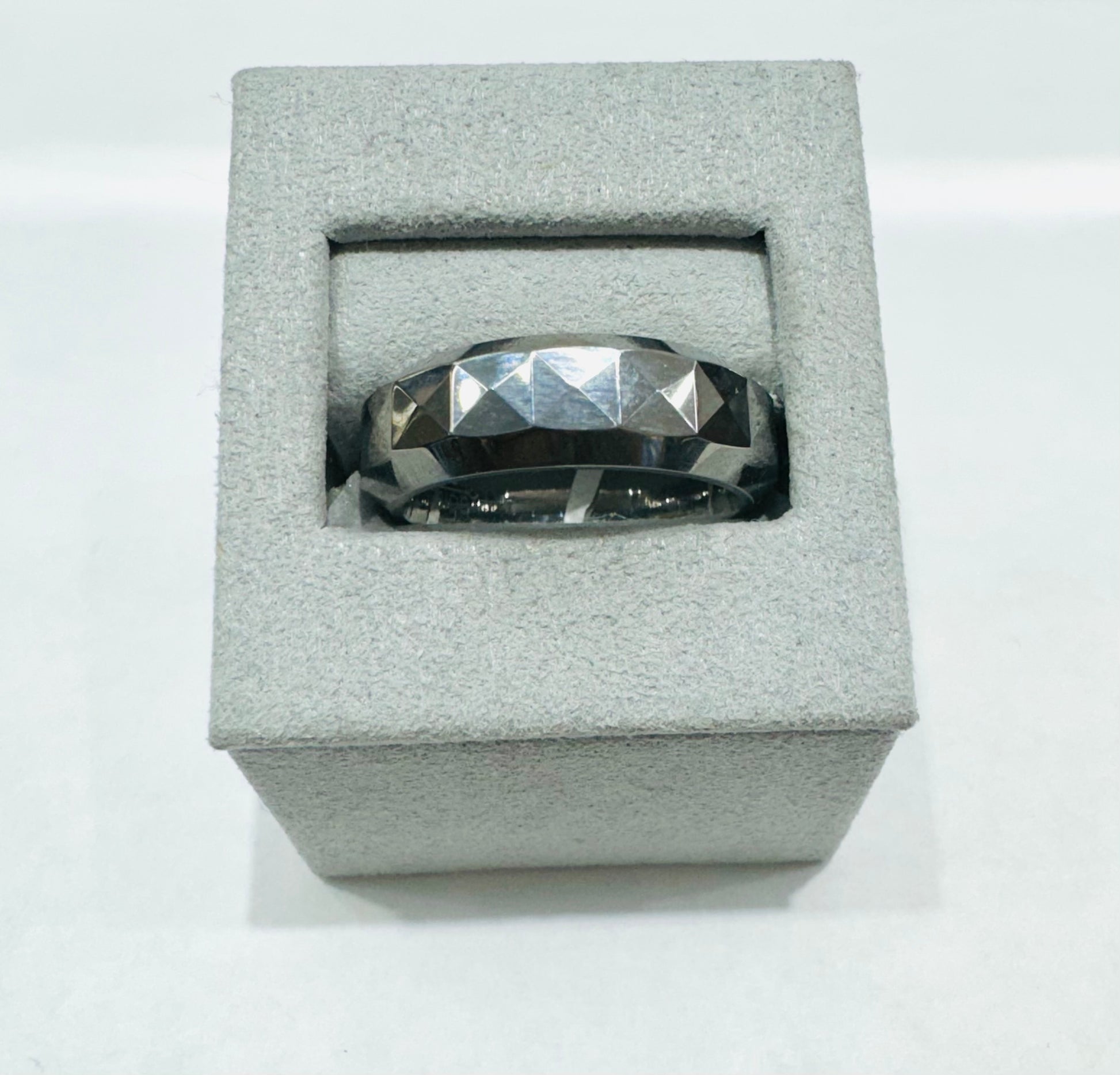 TUNGSTEN CARBIDE WEDDING BAND WITH FACETED POLISH DESIGN 7.3mm, SIZE: 11