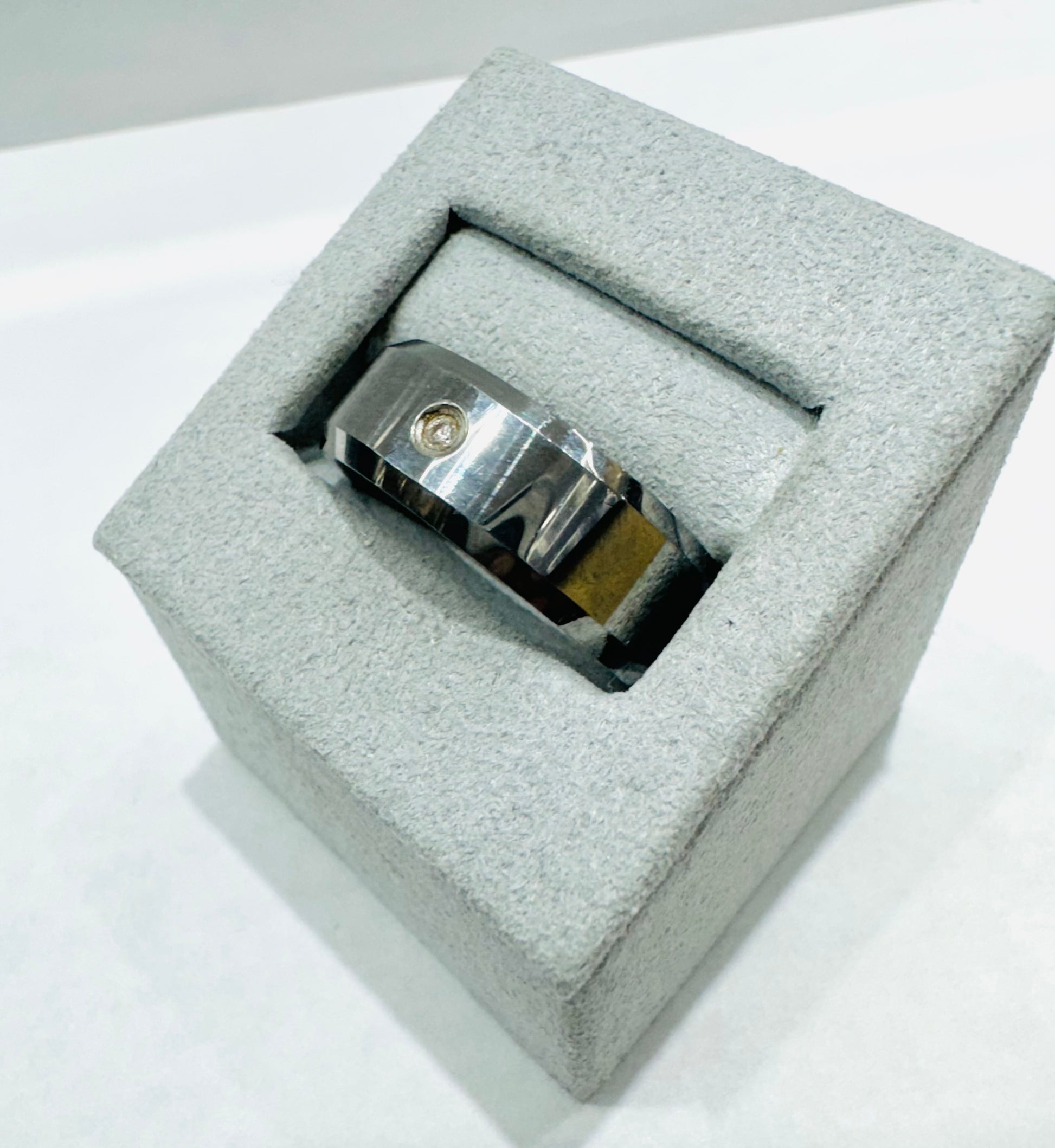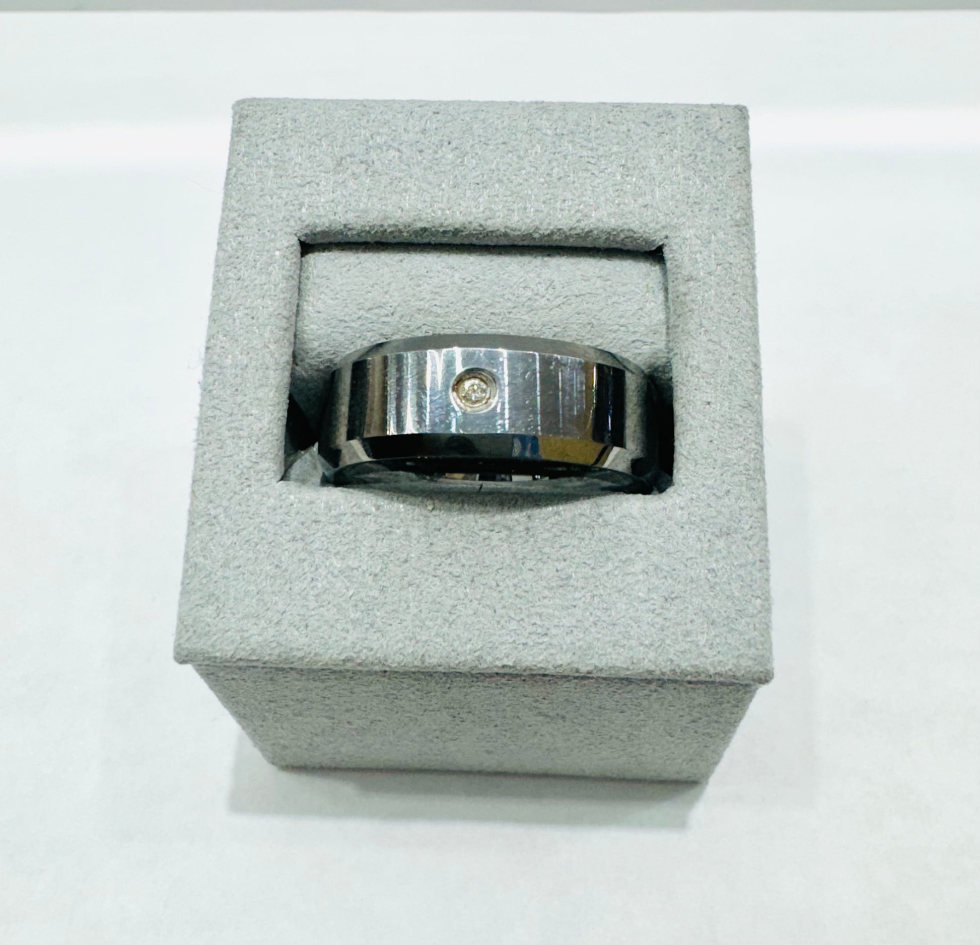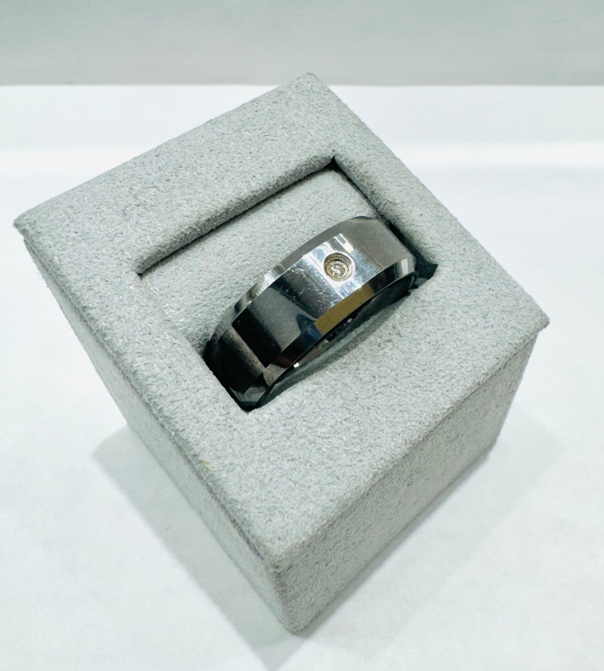 TUNGSTEN MENS WEDDING BAND WITH ONE CZ STONE, WIDTH: 8mm, SIZE: 11