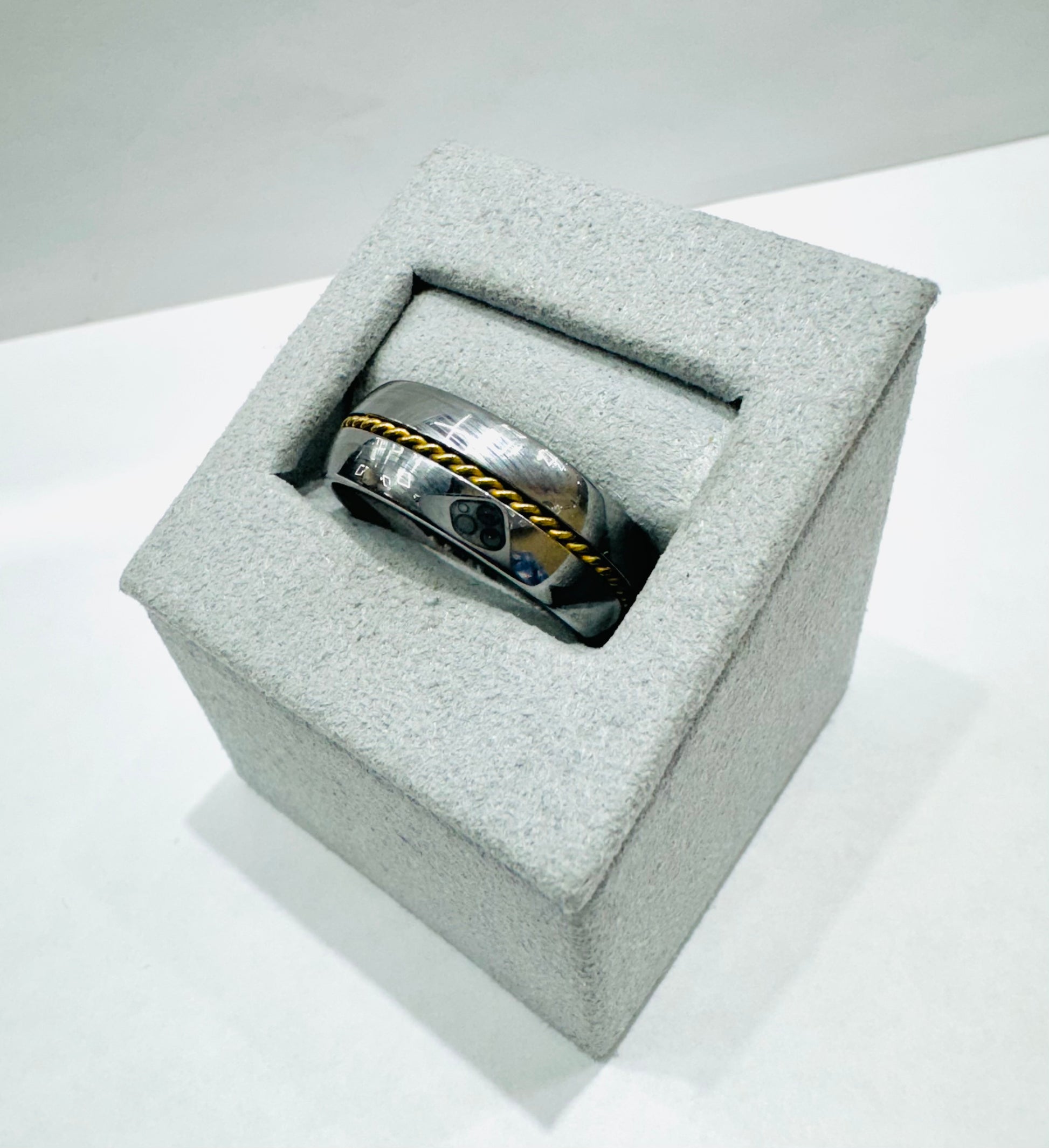 TUNGSTEN WEDDING BAND WITH GOLD PLATED BRAIDED INLAY 8mm, SIZE: 9