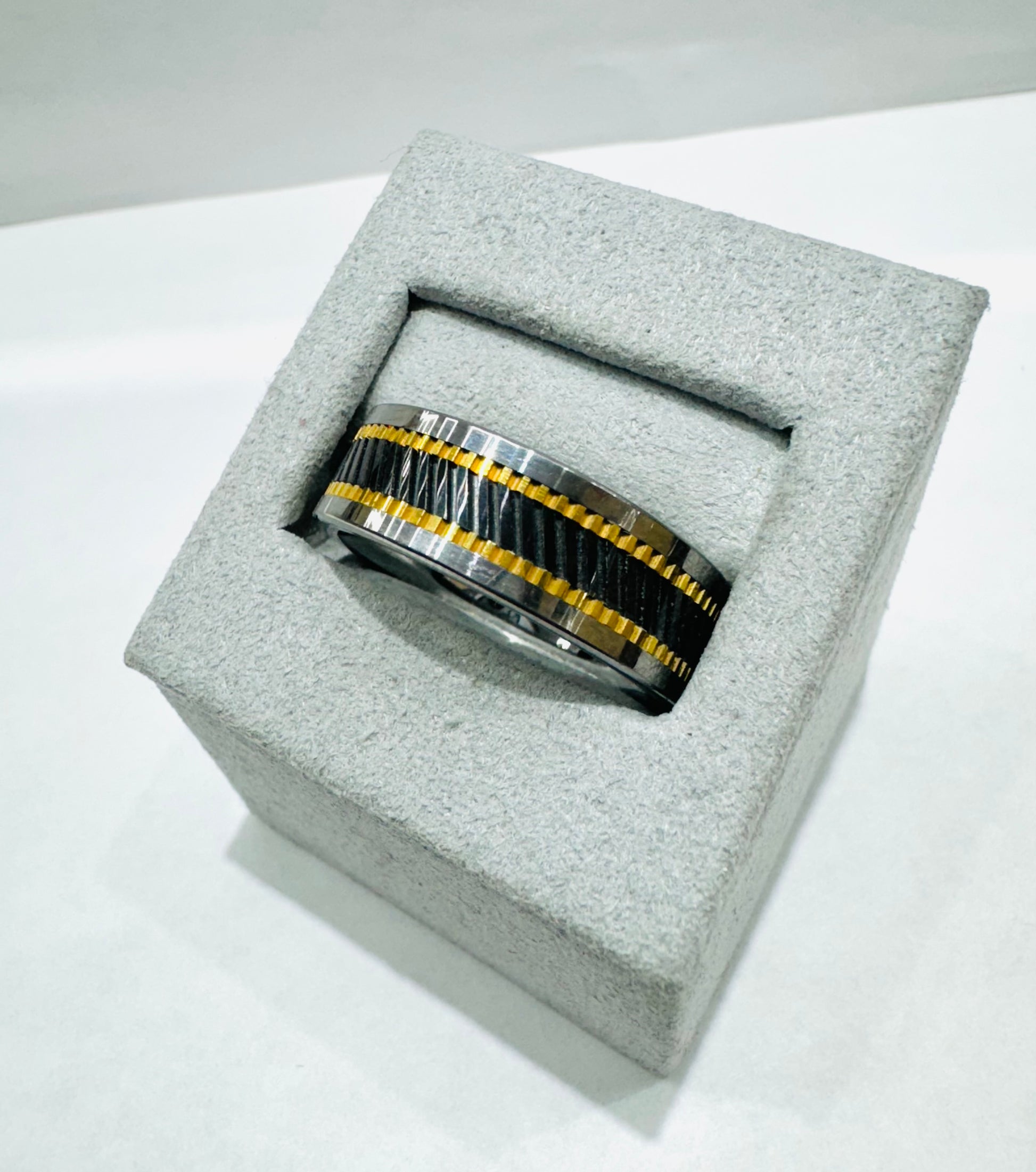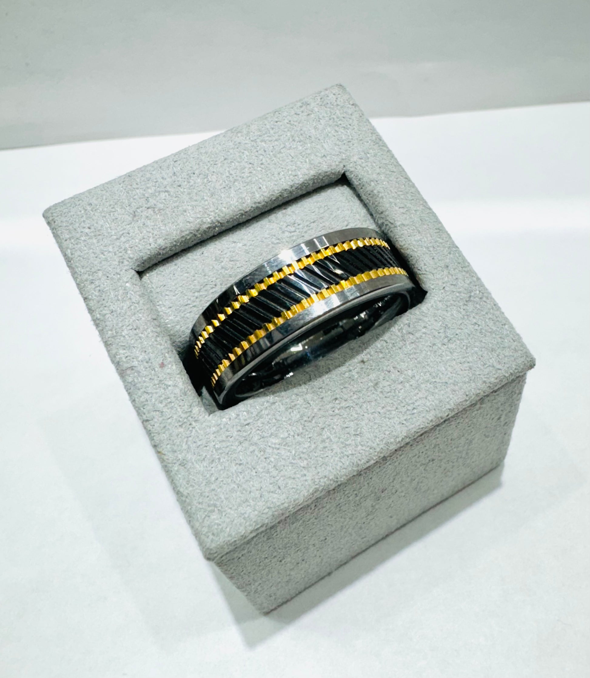 TWO TONE-BLACK & GOLD TEXTURED BRUSHED TUNGSTEN CARBIDE WEDDING BAND 8mm, SIZE: 11